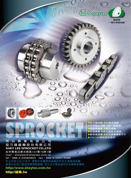 主要產品 : 各式鏈齒輪、雙鏈齒輪、RF輸送鏈輪、小型輸送鏈輪、滾子聯軸器、
