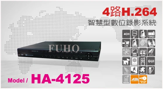 1.採用最新H.264壓縮技術,使資料量最小,錄影時間最長。2.採用GUI的操作介面,可同時支援面板操作/滑鼠/遙控器操作。3.Motion位移偵測區塊可任意無限制的規劃。4.影像備份當中可持續錄影不