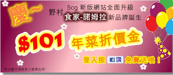 慶祝野村新品牌“食家諾姆拉”誕生,5cg新版網站大升級。101元年
