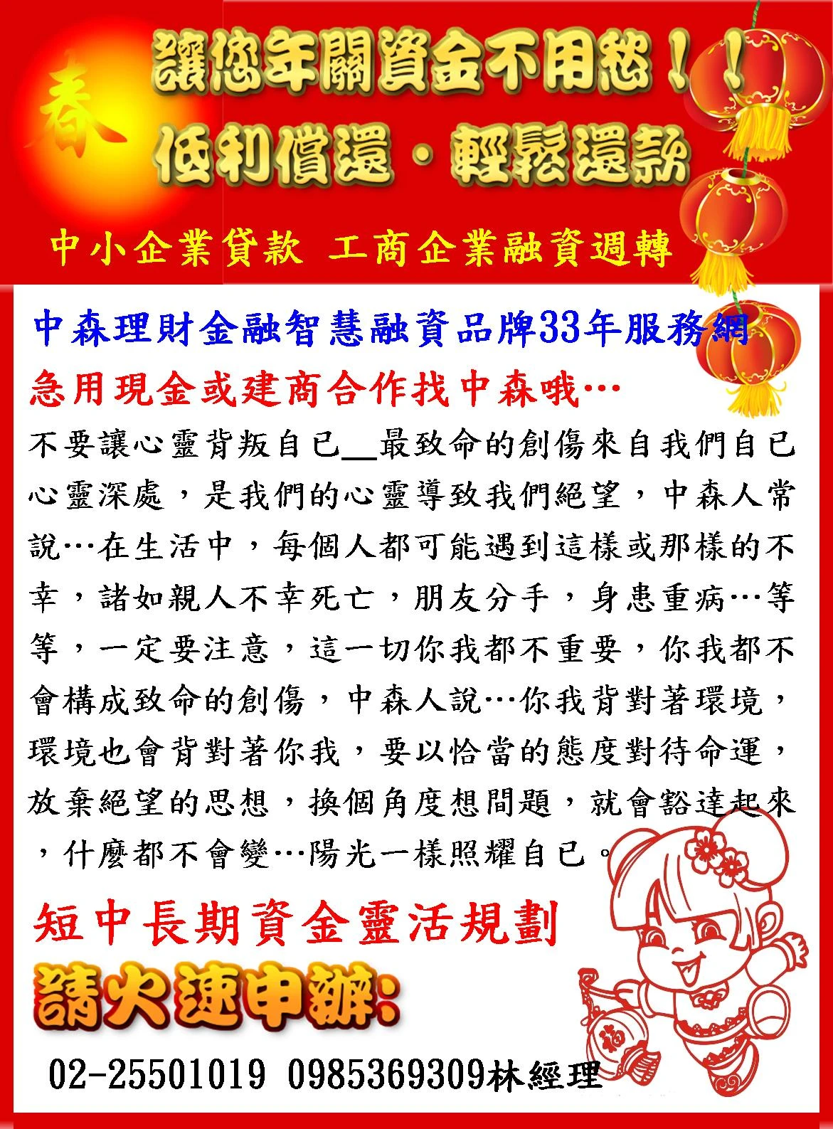 讓您年關資金不用愁!短中長期資金靈活規劃 請火速申辦02-25501019林經理