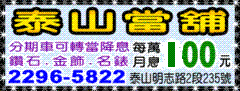 泰山當舖汽車借款機車借款黃金汽機車免留車