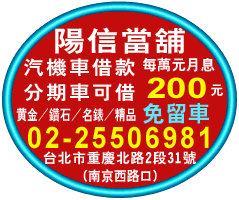 週轉典當服務台北市大同區陽信當舖提供借款服務、台北轎車借錢、