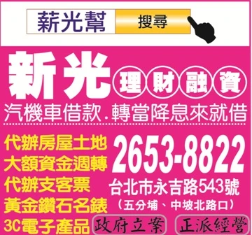 薪光幫,新光融資理財中心轉辦各項借貸票貼