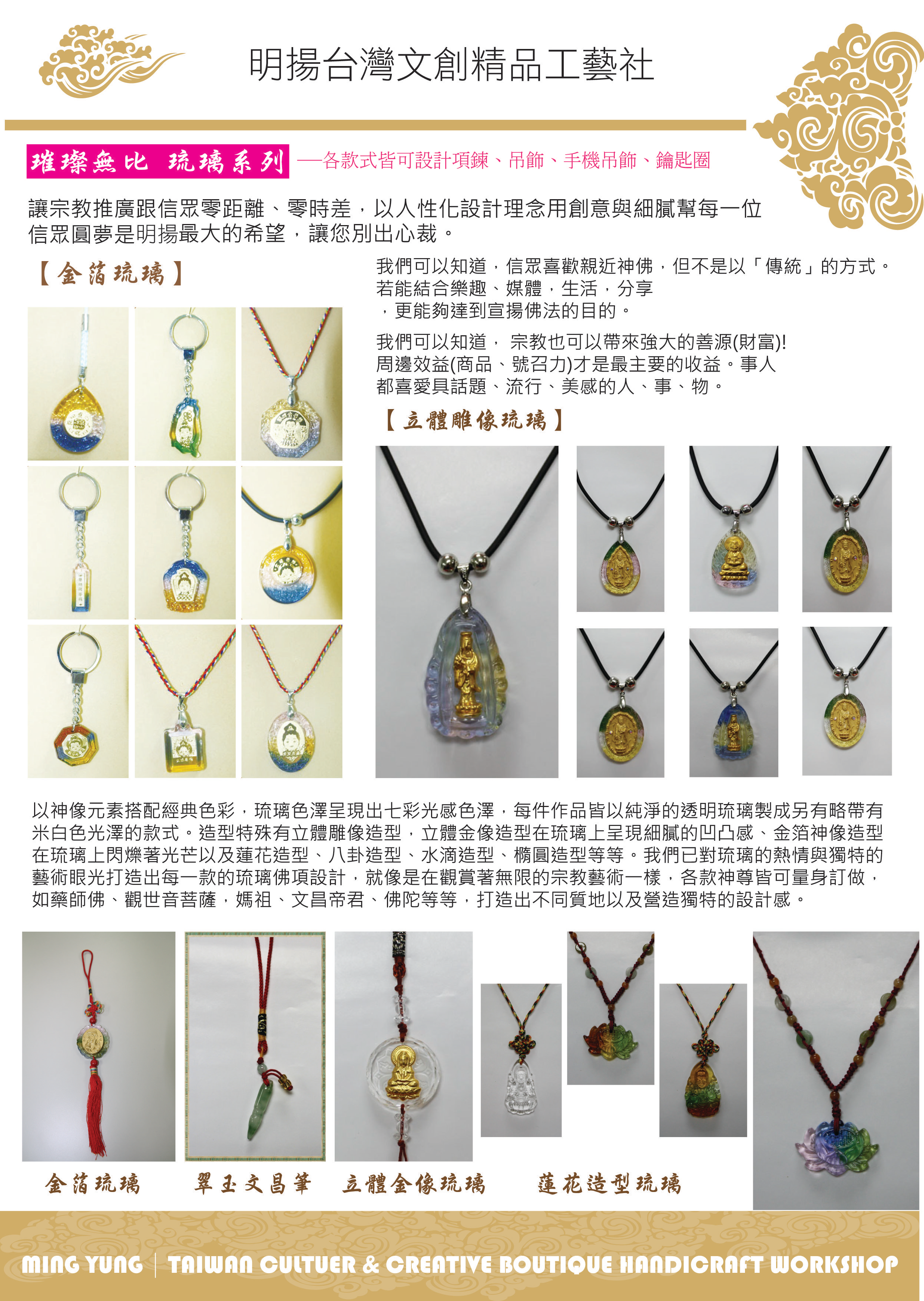 本公司工廠備有,布料工藝品設計織造加工、冷將陶瓷工藝品設計加工、金屬工藝品設計加工、金箔工藝品設計加工,等設備,接受客戶量身訂做,歡迎來電洽詢。還有眾多的公仔,印泥台,吊飾,贈品,福袋,等數種產品