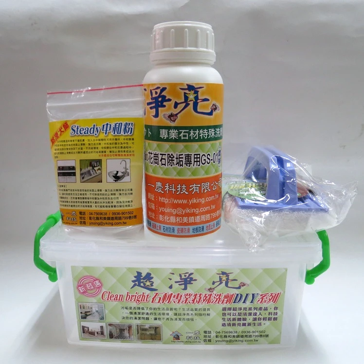 特強配方:配合多種活性劑及採用高科技配製而成,是一種多功能、高效清潔的綜合性產品。本品去污效果獨特,用途廣,本品能迅速徹底清除各類瓷磚、石材地板等表面及孔隙的灰垢、水泥垢、鏽垢、飲品漬、調味品漬、油漬、膠錘印、鞋印、頑固蠟漬、鋁鐵划痕等污漬,也適用於塑膠地板、塑料等表面污垢的清洗。