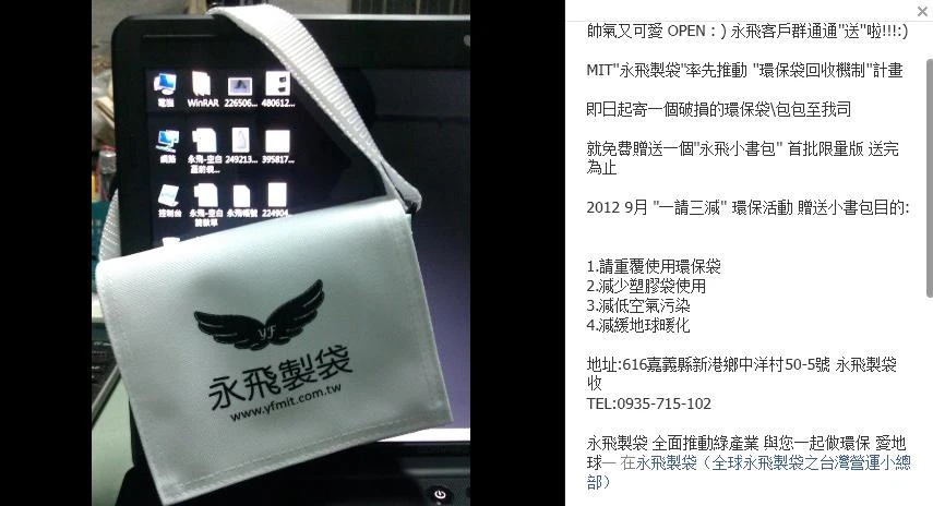 永飛企業(永飛製袋)各種包袋類\紡織類產品製造\開發:環保袋