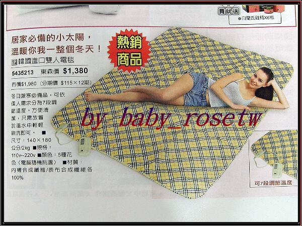 請見第二張圖, 東森沒有定時功能的電毯,售價就已經 是1380元了喔^^