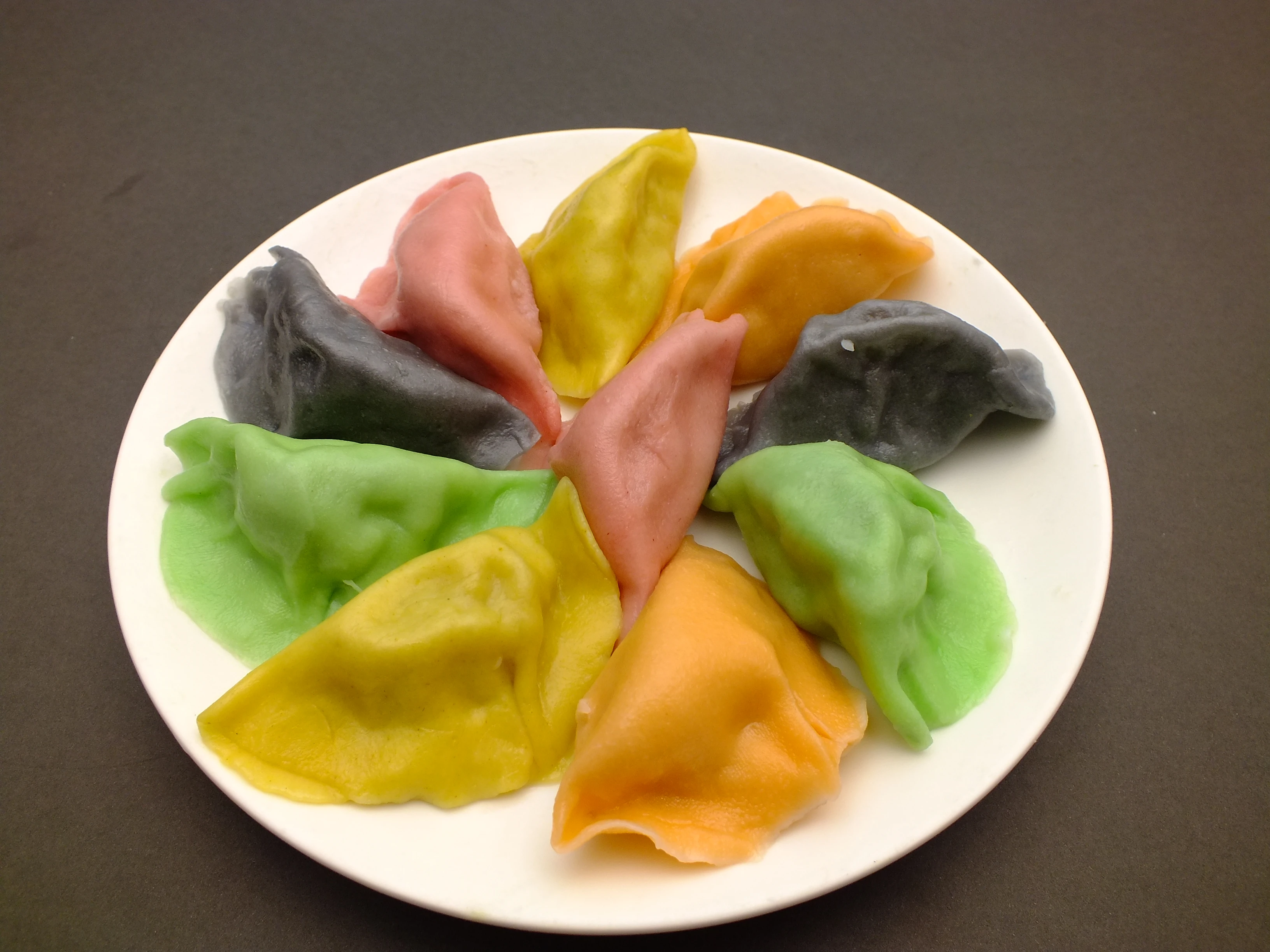 工廠自己生產手工冷凍水餃批發零售,以養生為訴求,六種彩色水餃