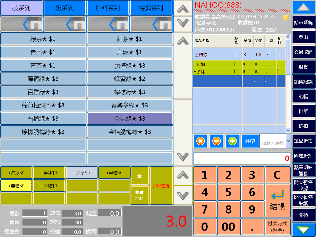 全修王-3號餐飲POS管理系統