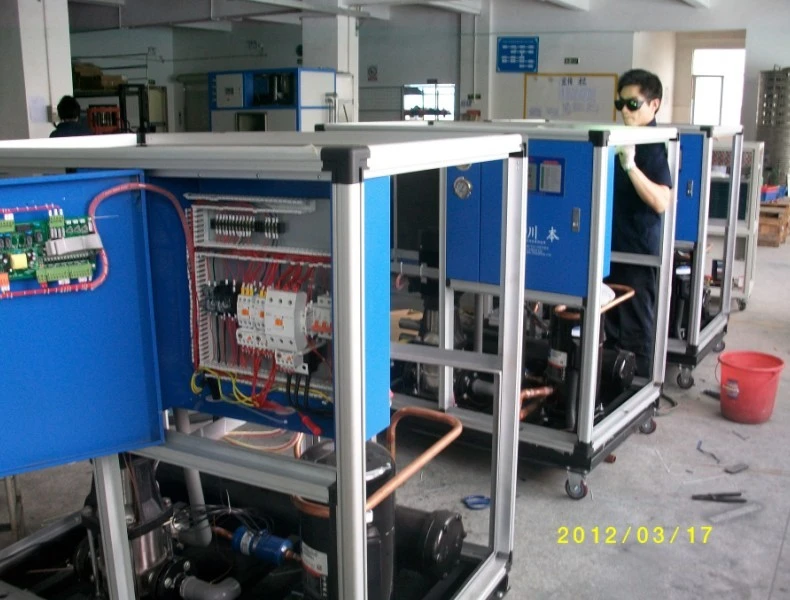 1    采用触摸式防水防尘控制面板,制冷温度330可调.精度可达到±0.5-2 制冷量在3KW-900KW之间可先,特殊用户可安装水处理器,处理水质问题。从解决印刷冷却系统中水质、温度的要求。接触器属法国施耐德、韩国LG系列,控制系统采用模块化设计,并装有系统进酸碱保护电流过载保护高低压保护及时间延时保护等多项保护装置,如有故障及时报警并显示故障.