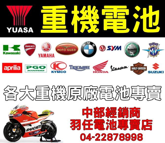 大型重型機車 原廠指定電池 YUASA湯淺電池 GS統力電池,中部經銷商-羽任電池 04-22878998