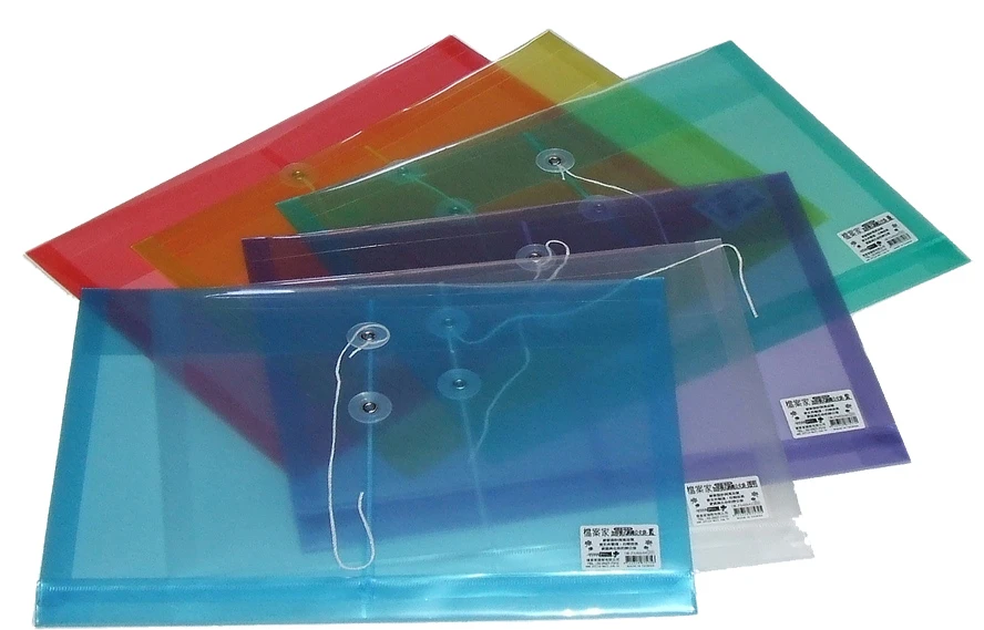 環保PP可回收材質A4加厚繞繩公文袋(立體)顏色:透明紅黃藍綠紫橫式繞繩公文袋(立體)容量加大