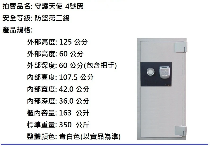 <產品說明> 1. 防盜功能: 安全等級相當於歐規之防盜第二級 國際安全等級的分類說明,請搜尋產品母站>>> 傳家寶金匱網 本產品遭遇任何攻擊: (包括切斷電源、敲擊、搬運、切割、亂猜密碼鎖..等等) 皆會立即以簡訊通報到主人的手機。