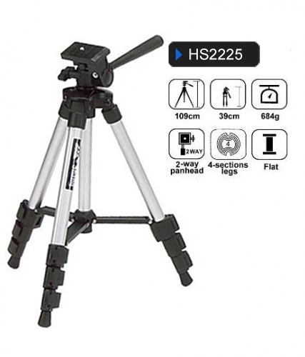 HS2225 雙溝三腳架型號 : HS2225 雙溝三腳架4段式腳架展開高度:109cm收納高度:39cm產品重量:68