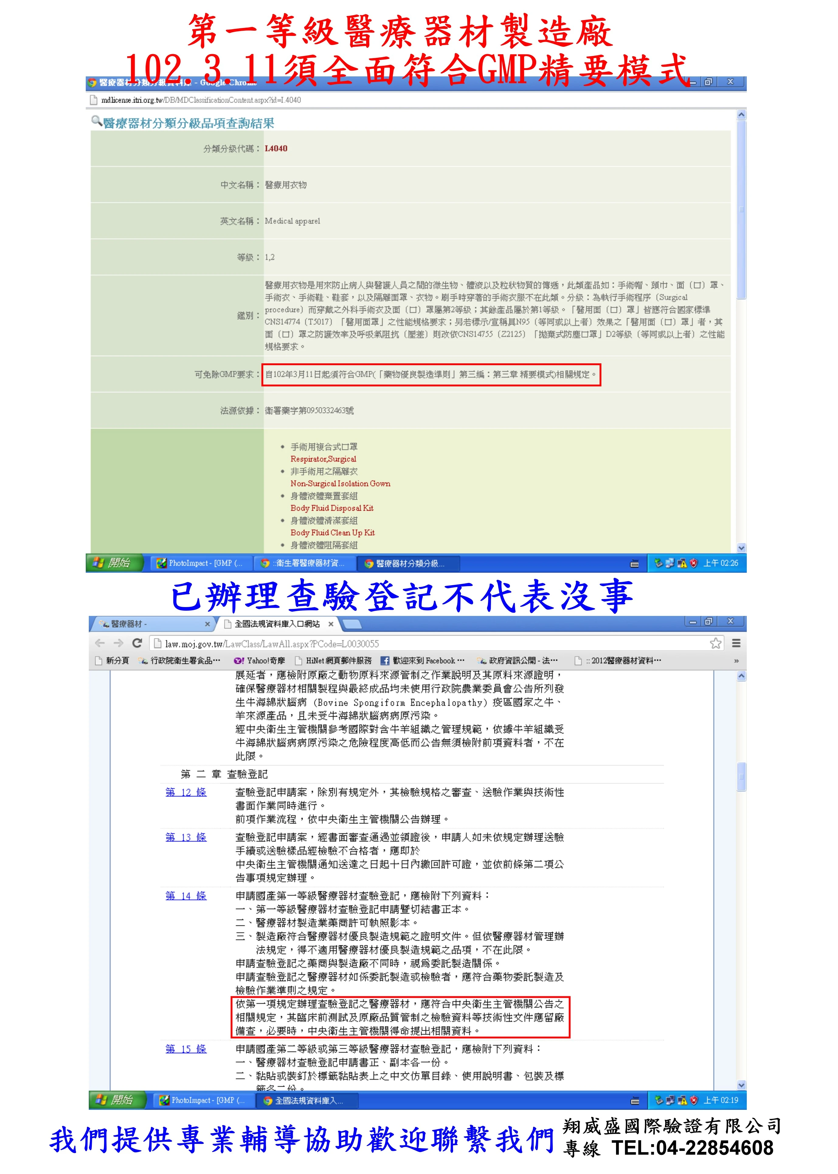 例如口罩分類I4040必須符合GMP之精要模式