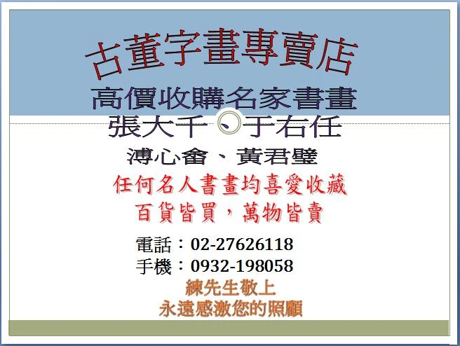 古董字畫專賣店(收購字畫、字畫鑑定、字畫買賣、于右任,張大千字畫買賣免費估價