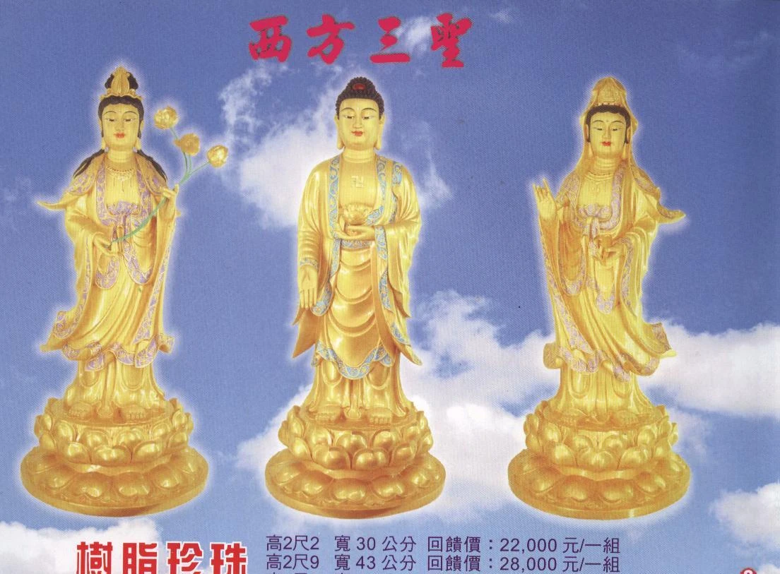出清西方三聖 高2.2尺 2.9尺 4.2尺 6.4尺0 運費另計0佛說造佛像功德:若有淨信善男子、善女人,於佛功德專精