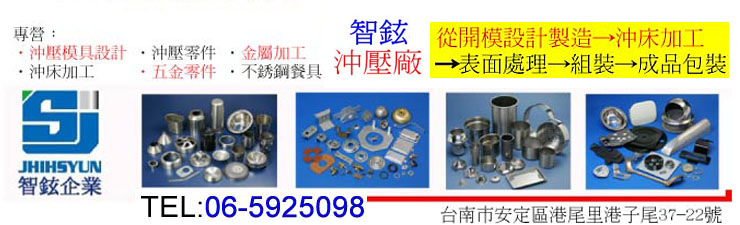 座落台南安定智鉉沖壓廠,專業沖壓模具各種小五金工業製品.