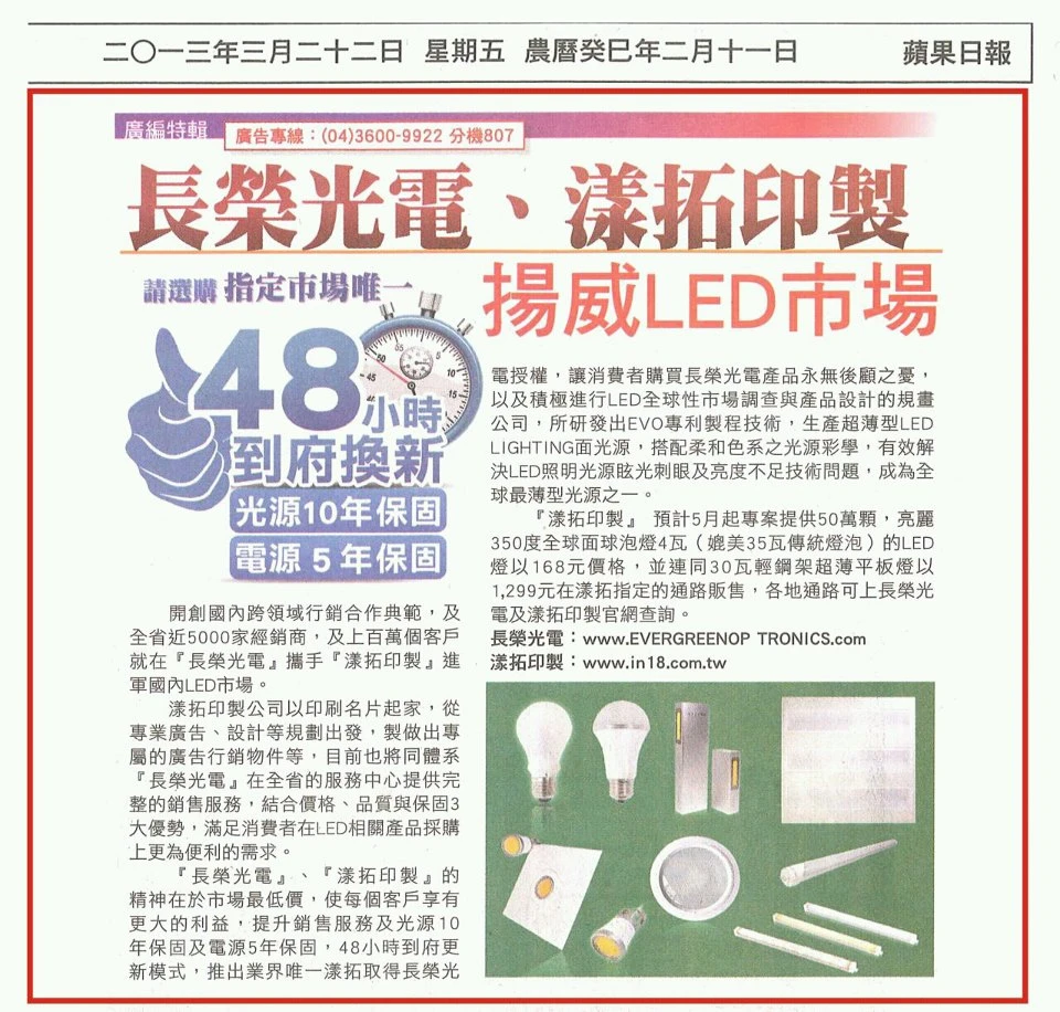 LED照明市場成長快速,廠商前仆後繼進入,使得LED照明廠商出現不同銷售模式,而且由於廠商數量眾多,消費者一時之間無法判別好壞;過去傳統照明燈具主要是透過經銷商、設計師以及零售通路銷售供給給大眾消費者,鮮少能直接服務到消費者;由於傳統燈具被認定為耗材,保固、服務常常是消費者所忽略的。名片、DM,在商業活動中是不可缺乏的必需品!我們以低於市場行情,做為常態性行銷辦法,絕佳的價格競爭力及提供市場最好的到府收送服務及各項貼心服務,藉此證明我們絕對能做到LED保固及到府換新的理念,並先以【免費試用】增進客戶的購買慾。