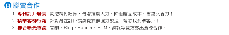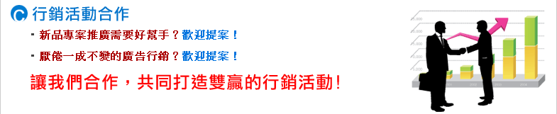 合作與廣告首頁產業社群平台合作辦法身障服務網知識平台合作建置媒體合作優惠券好康兌獎合作產業•行銷•活動合作